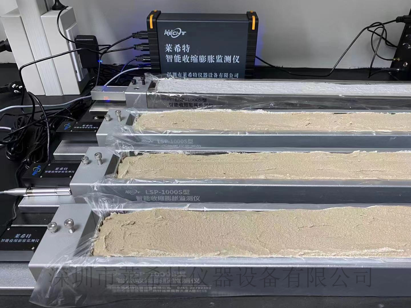 深圳莱希特智能收缩膨胀监测仪主要用于在线监测水泥基、石膏基、净浆、砂浆各龄期的收缩和膨胀率,开启0龄期实时在线监测。试验通过收缩槽另一端的形变传感器实时监测材料在凝固过程中的形变数据,采用物联网最新技术,手机和电脑端随时查看形变(收缩和膨胀)全过程。智能收缩膨胀监测仪广泛应用于自流平砂浆、修补砂浆、罐浆料、预拌砂浆、干混砂浆、新拌砂浆、混凝土、石膏、水泥、瓷砖胶等行业。