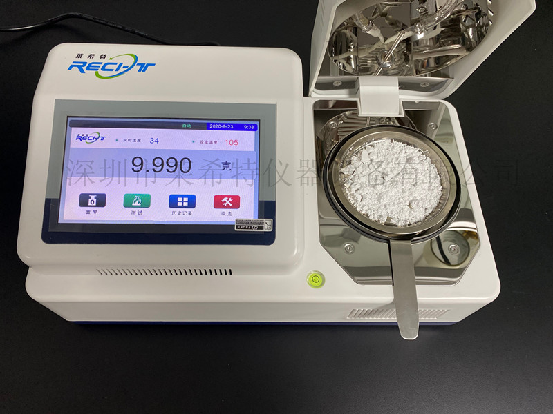 莱希特LXT-200S型塑胶类水分测定仪是由称量单元和加热单元组成,是基于干燥失重原理来测定样品的水份含量。水份检测仪通过内部集成的称重系统记录样品重量初值,然后采用钨卤环形光源对样品加热,称量系统实时监测并记录样品重量,当达到规定要求时自动停止测量,并记录样品重量终值。通过重量初值与重量终值对比,仪器自动将样品重量的差值换算成水份含量及固含量。